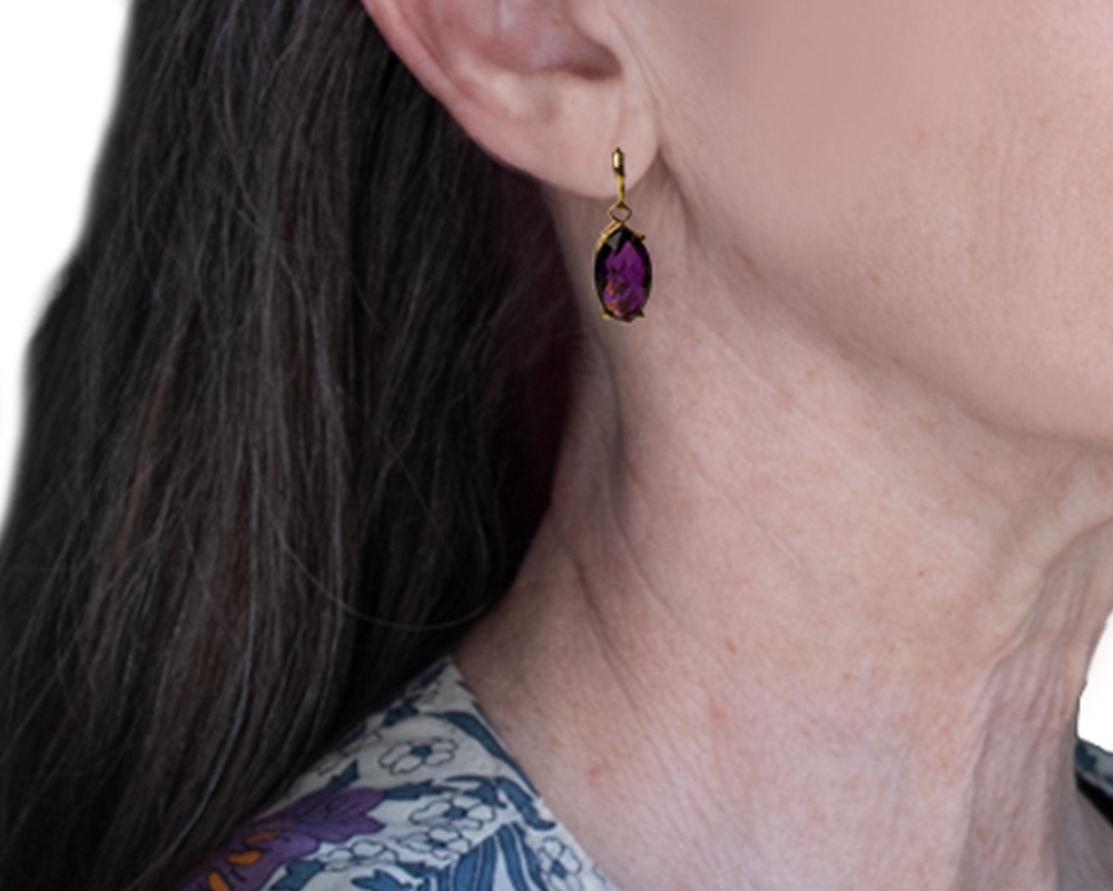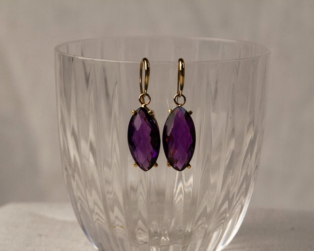 Beautiful Brazilian Amethyst stones set in 14k Gold. This is a set to pass down to those that you love. Wear alone or with a simple gold chain or bracelet.