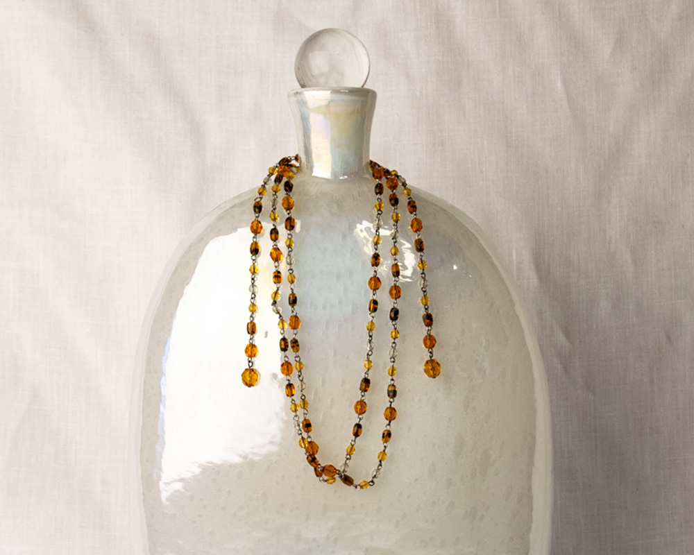 Antique beads that look like light and dark Amber on Sterling Silver chain.