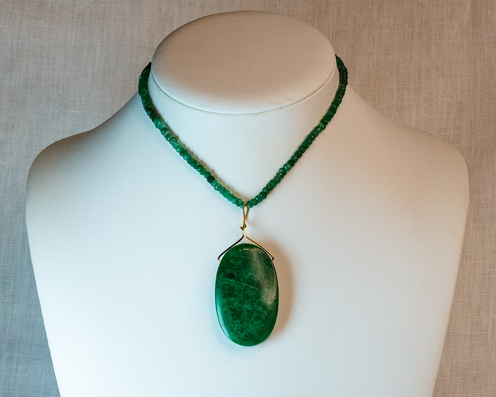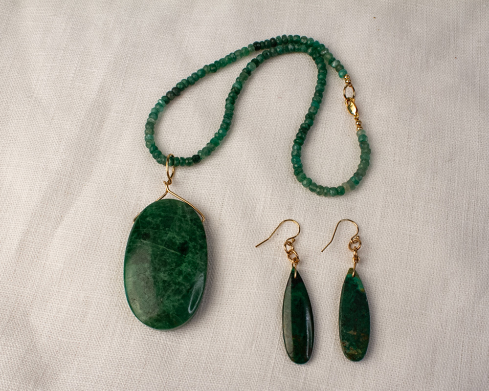 Beautiful 15″ Chrysocolla Necklace with a 2 1/4″ Chrysocolla Pendant. Finished with 14k Gold Fill beads and a 14k Gold fill clasp. Pair with matching earrings.