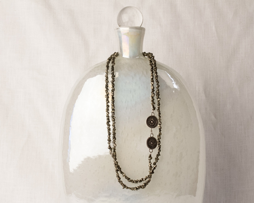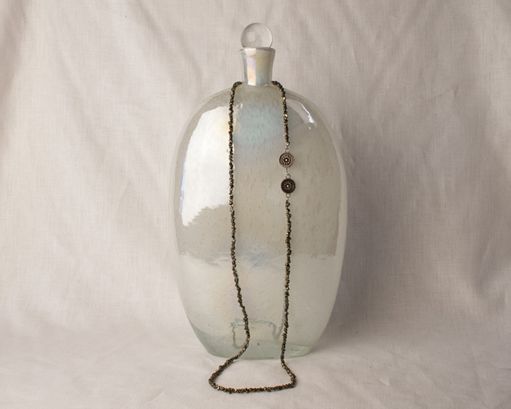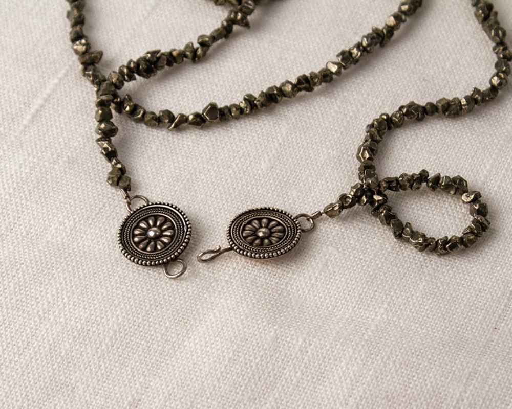 36″ Hematite necklace with a unique round Sterling Silver Clasp/ Wear as a long necklace, doubled or a wrap bracelet.