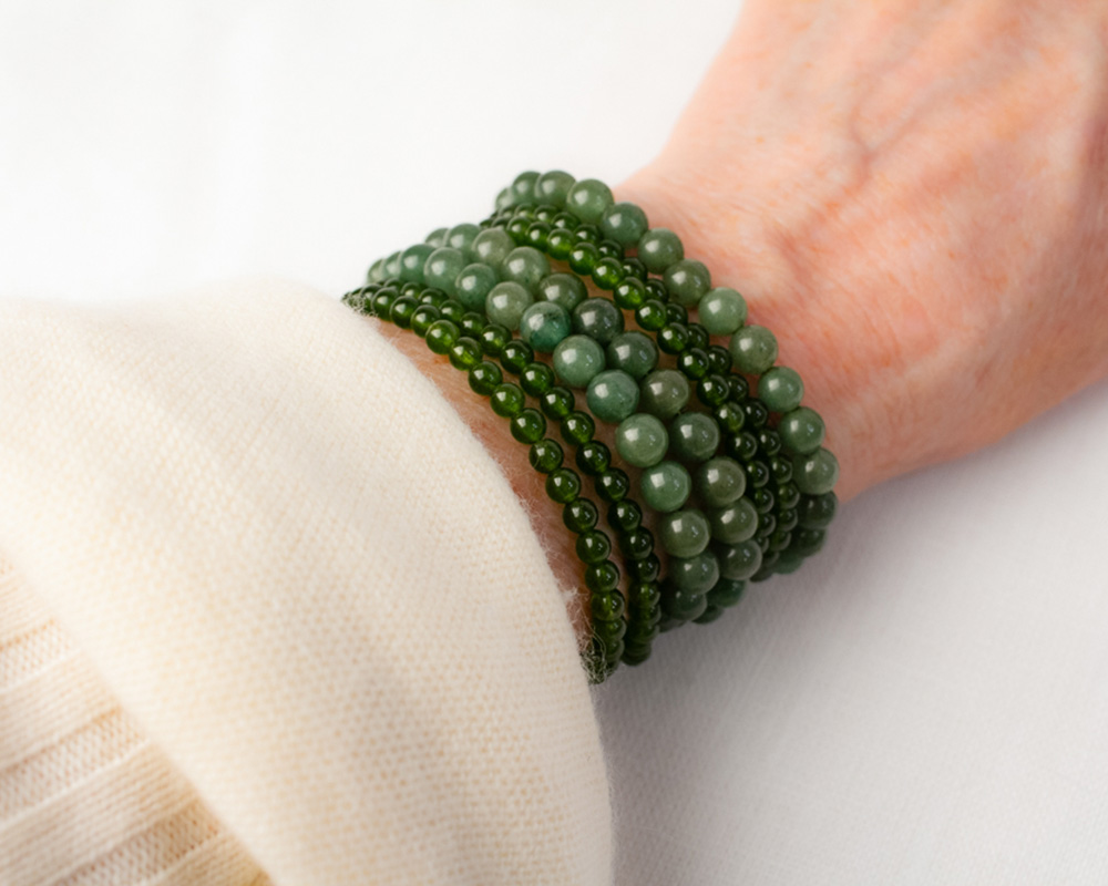 Light and dark green Jade 7″ multi-strand bracelet with brass fittings. Fun for any occasion