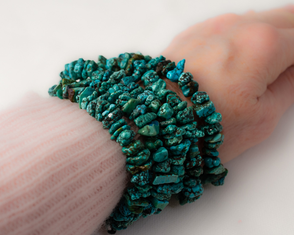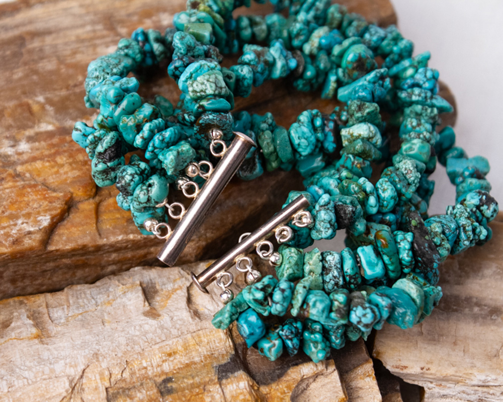 Turquoise chip multi-strand 7″ bracelet with a Sterling Silver clasp. Elevate your life!